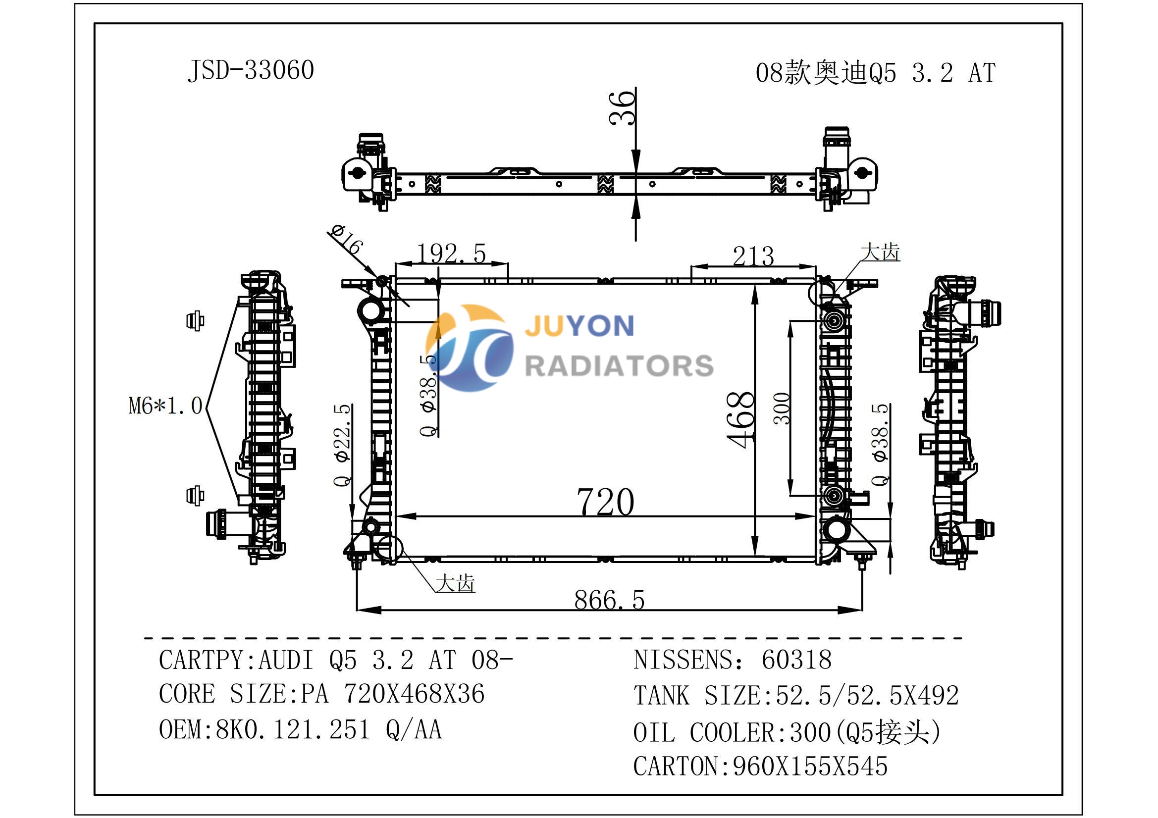AUDI Q5 3.2 AT 08- OEM 8K0.121.251 Q/AA/8K0.121.251 Q/AA /8R0.121.251A/8R0121251A Radiator