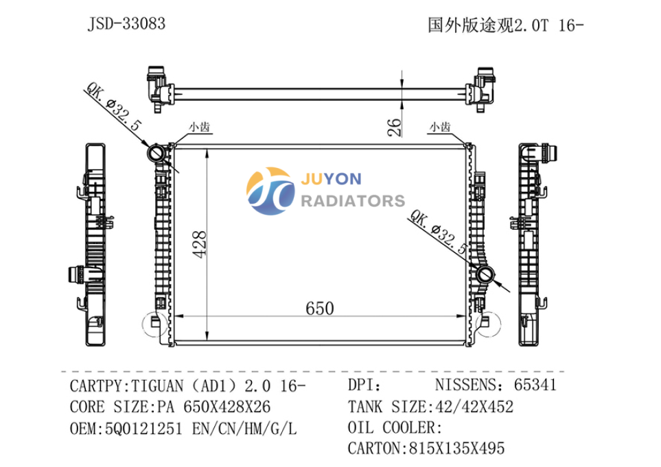 VOLKSWANGEN AUDI TIGUAN(ADI)2.0 16- OEM 5Q0121251 EN/CN/HM/G/L Radiator