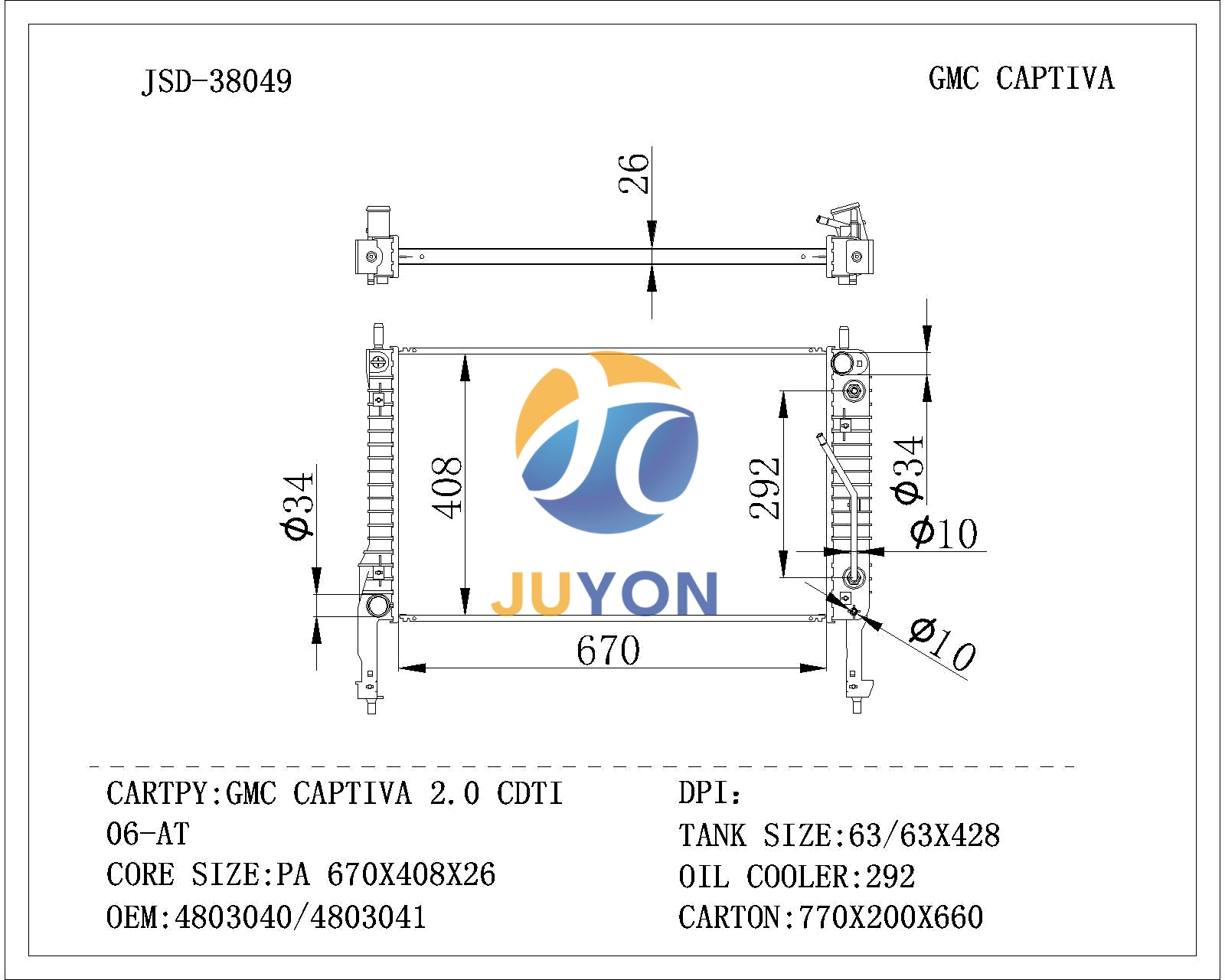 GMC CAPTIVA 2.0CDTI 06'AT/4803040/4803041/radiator