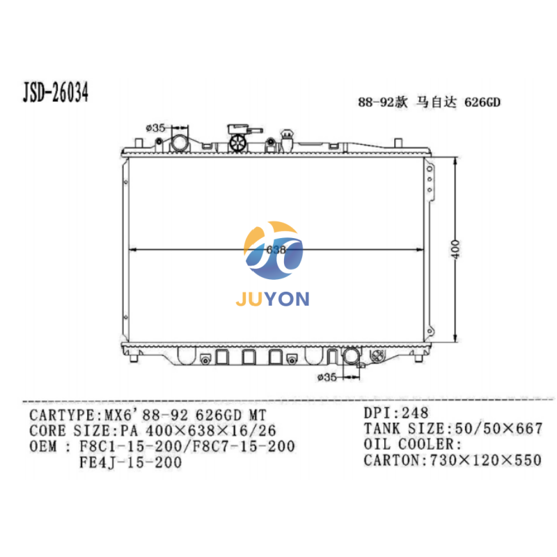 Mazda MX6’ 88-92 626GD MT OEM F8C1-15-200/F8C7-15-200/FE4J-15-200 Radiator