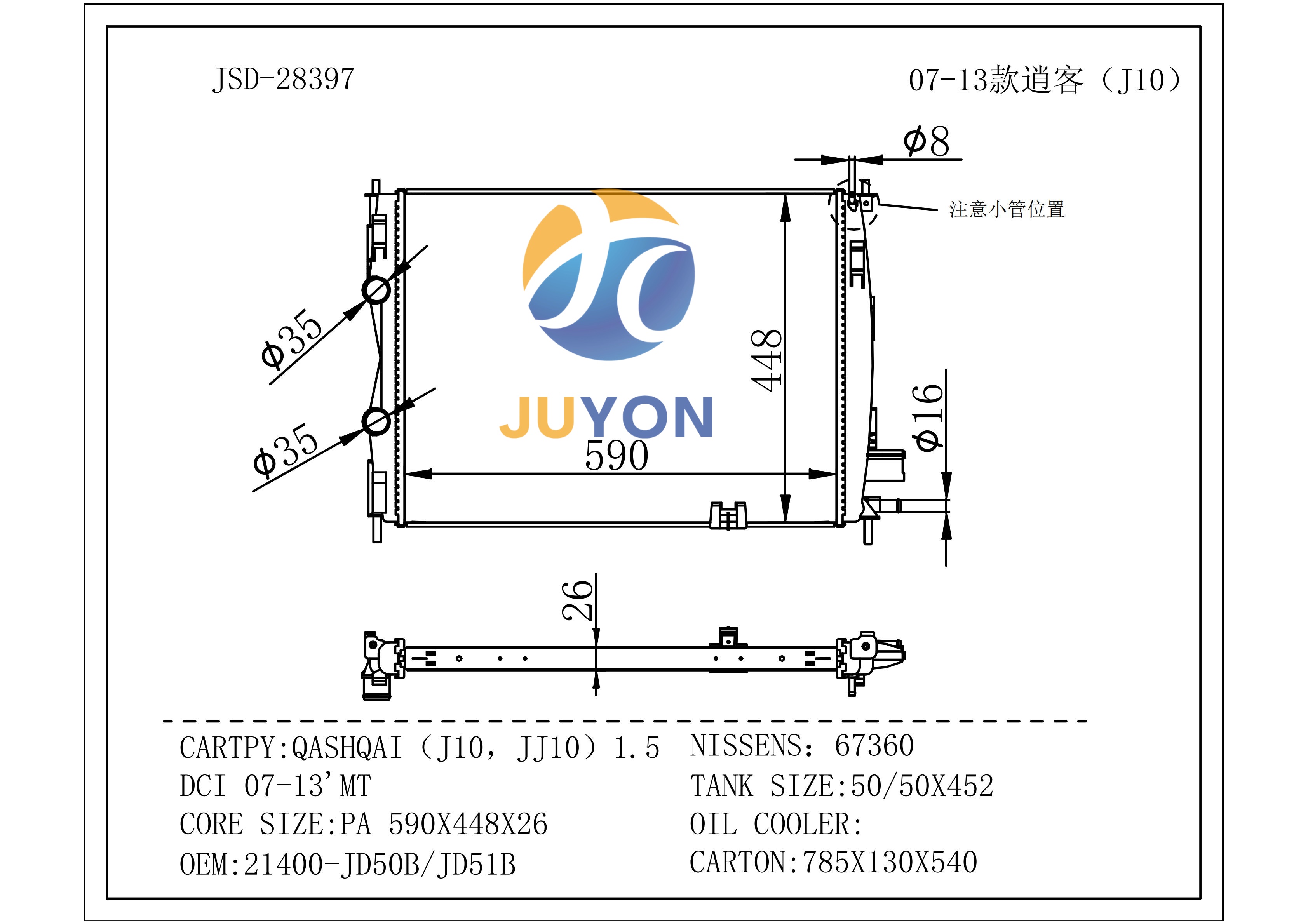 QASHQAI 1.5 DCI 07- MT/21400-JD50B/JD51B/RADIATOR
