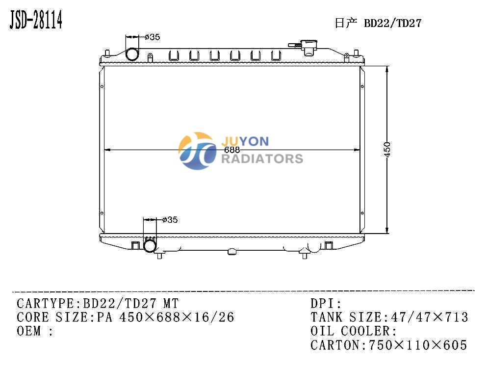 NISSAN BD22/TD27 MT OEM 21410-Vk505 Radiator