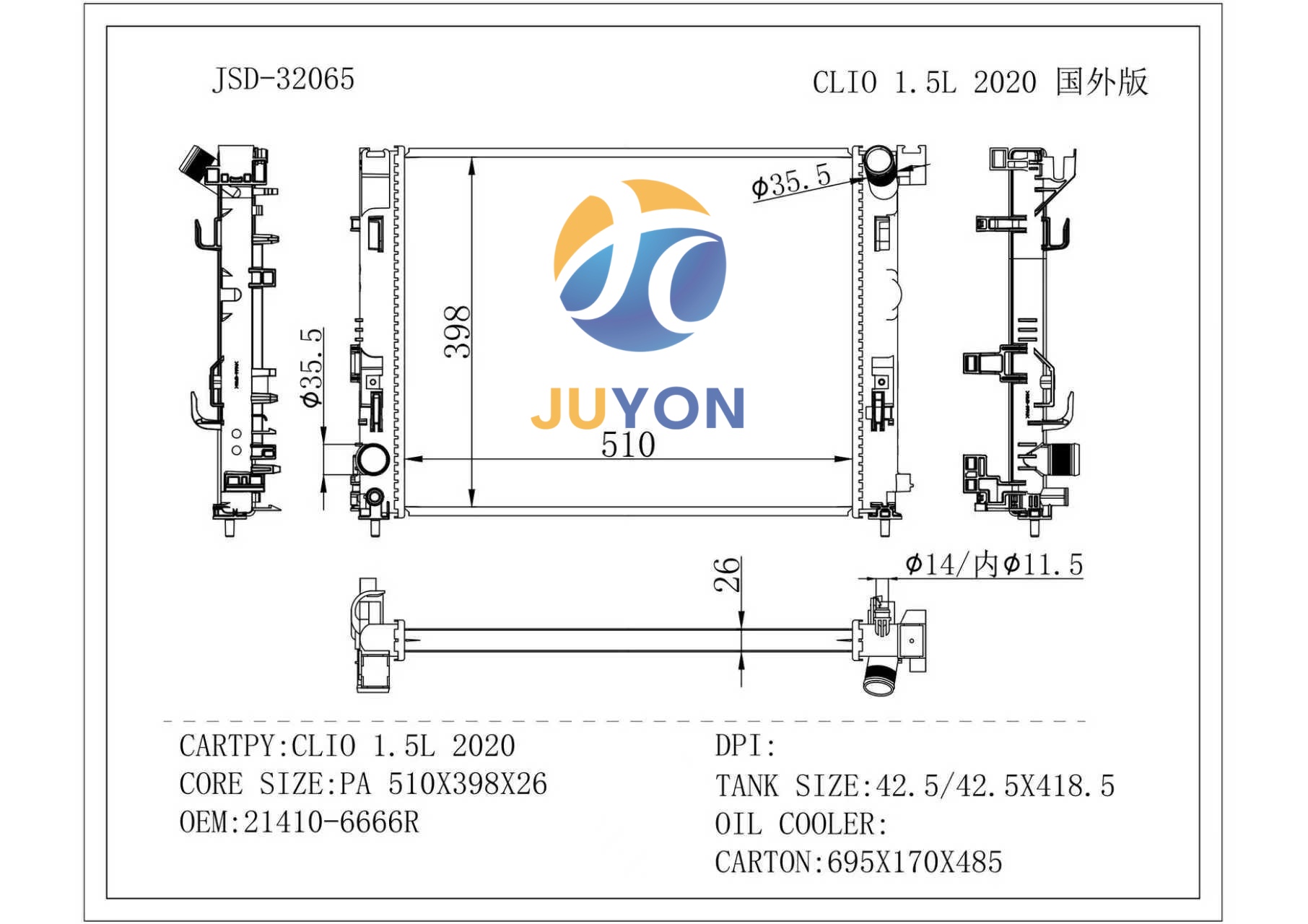 CLI0 1.5L 2020CORE/21410-6666R/radiator