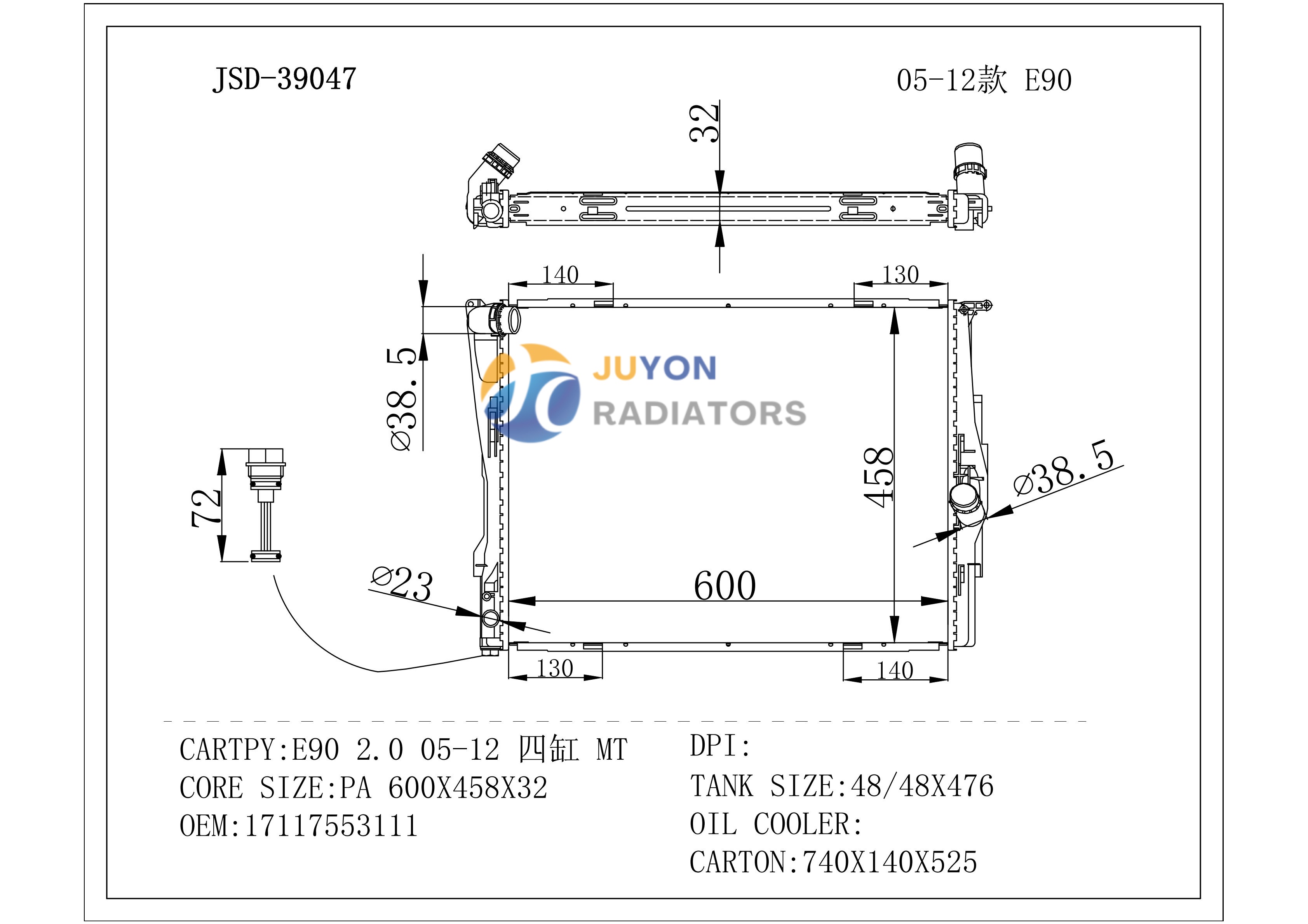 BMW E90 2.0 05-12'four Cylinder -MT OEM 17117553111 Radiator