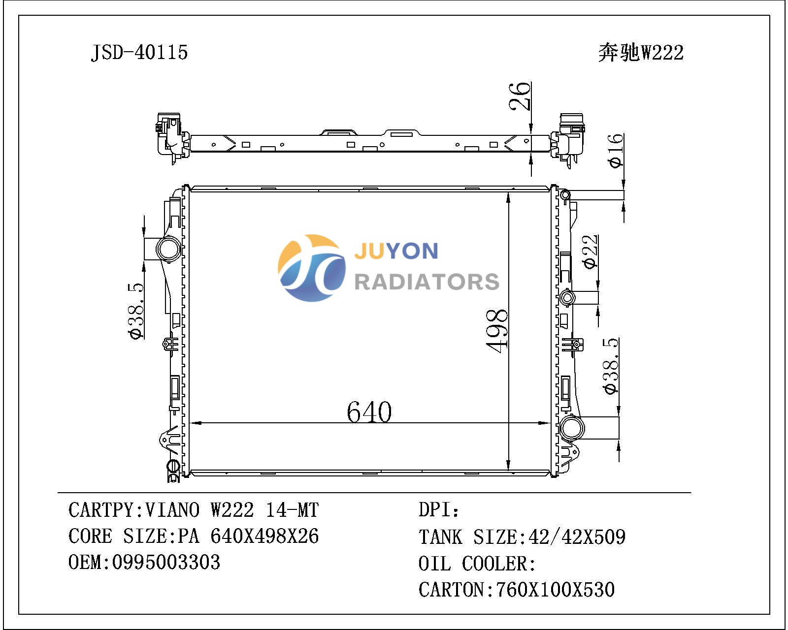 BENZ VIANO W222 14-MT OEM 0995003303 Radiator