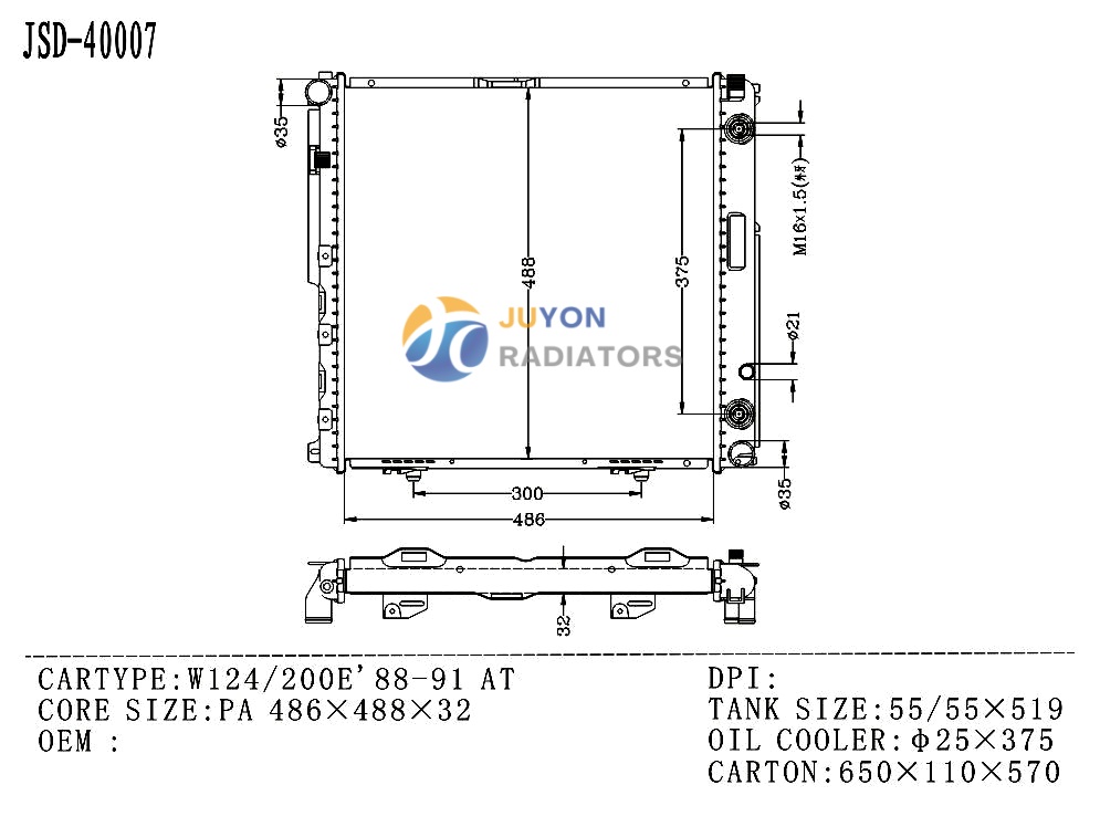 BENZ W124/200e'88-91 AT OEM W124/200e'88-91 AT Radiator