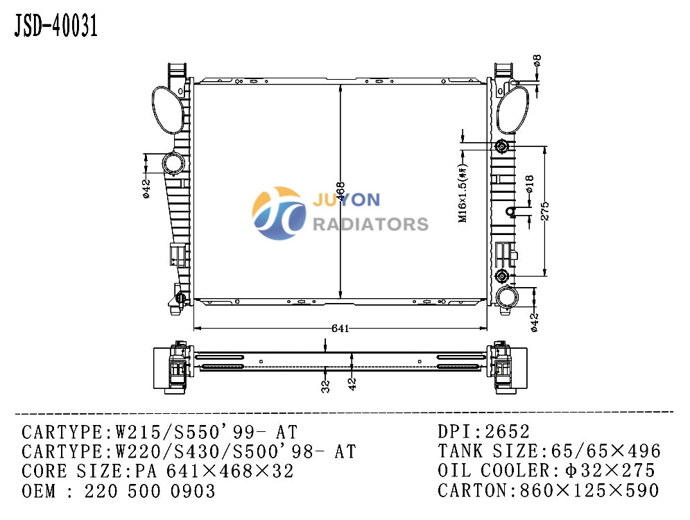 BENZ W215/S550'99-AT/W220/S430/S500 '98-AT OEM 2205000903 Radiator