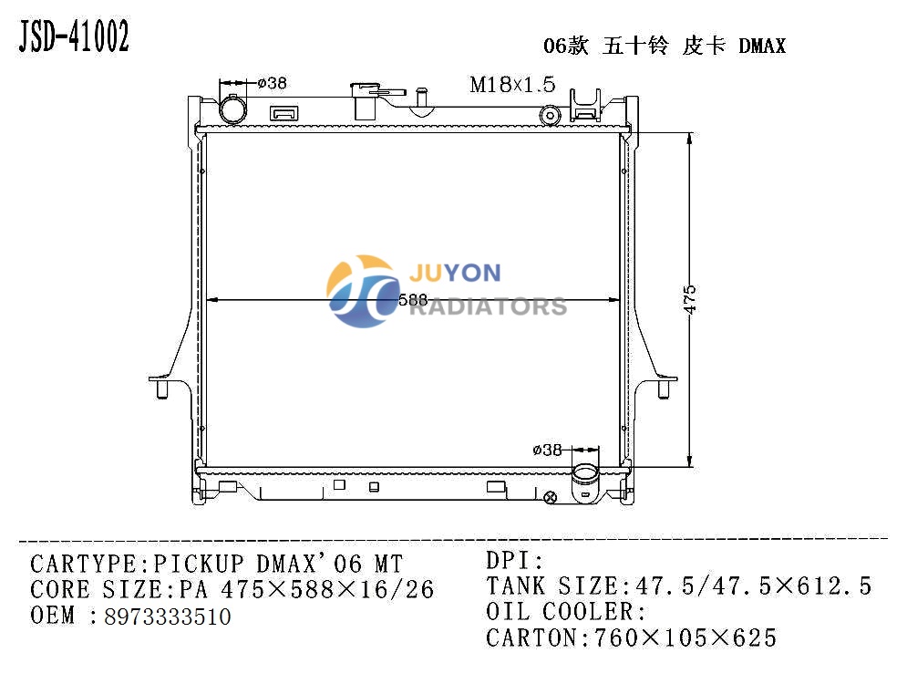ISUZU PICKUP DMAX'06 MT OEM 8973333510 Radiator