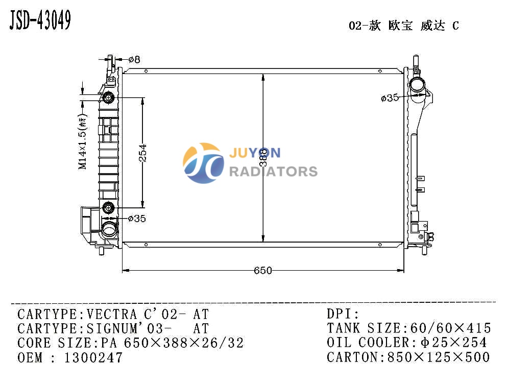 OPEL VECTRA C'02-AT /SIGNUM'03- AT OEM 1300247/24418344 / 51770411 Radiator