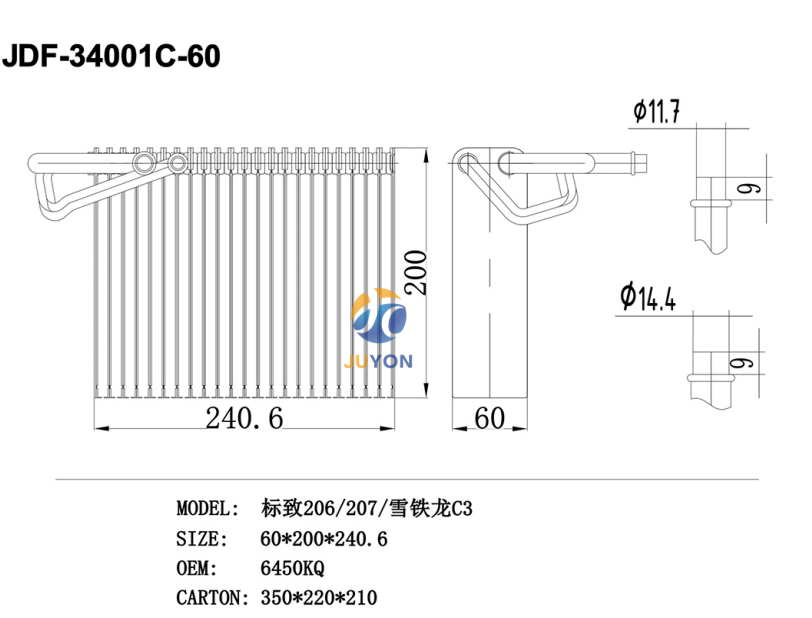 PEUGEOT 206/207/CITROËN C3 OEM 6450KQ Evaporators