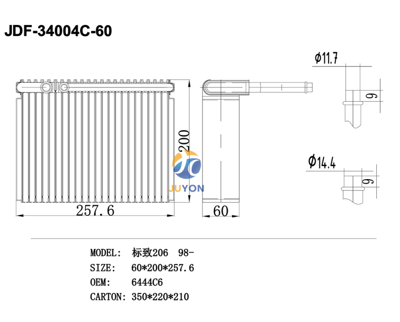 PEUGEOT 206 98 Model OEM 6444C6 Evaporators