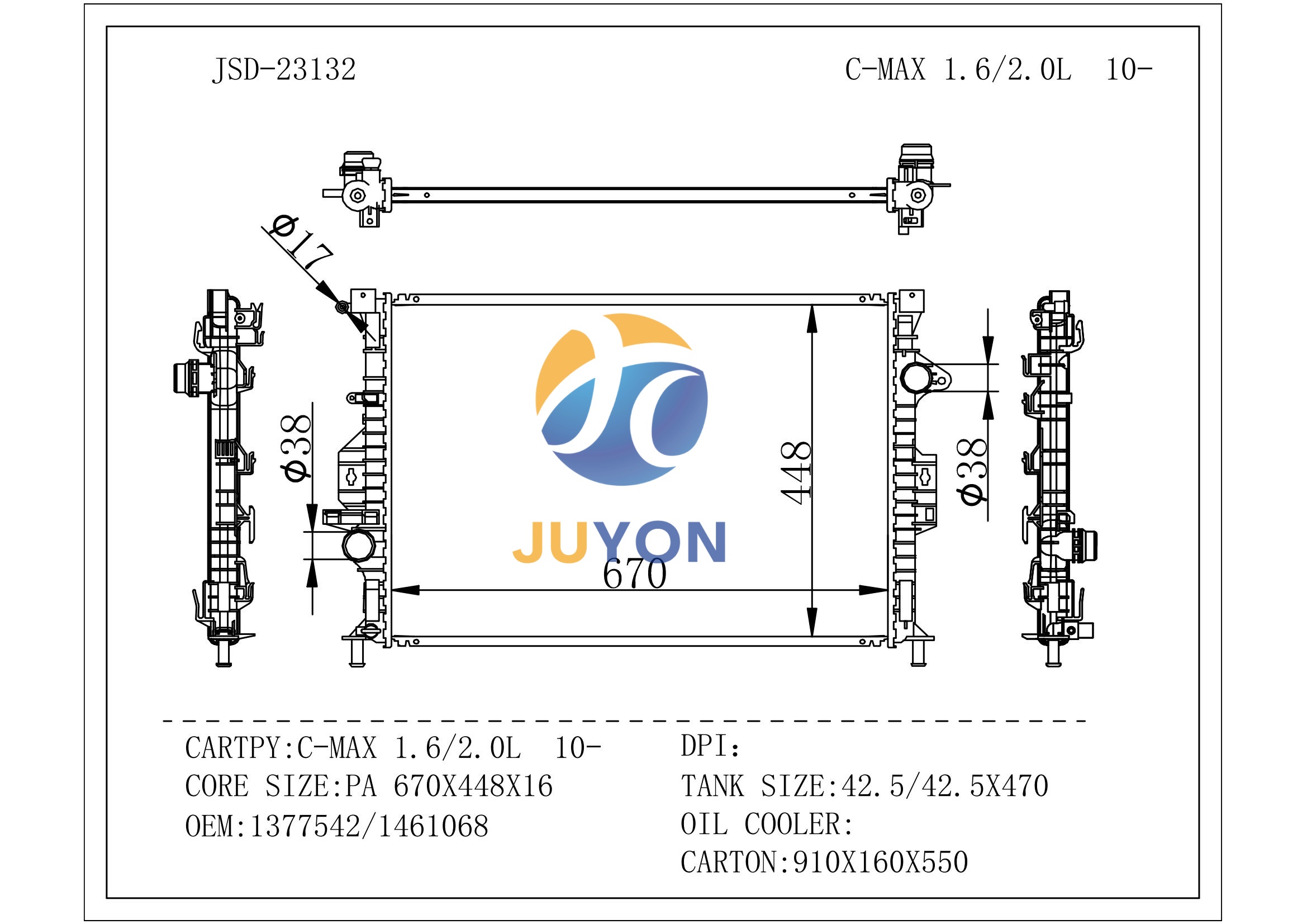 C-MAX 1.6/2.0L 10-/1377542/1461068/radiator