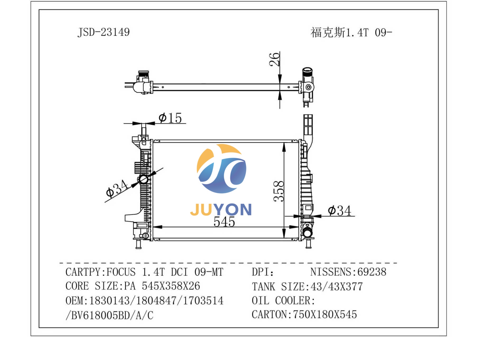 FORD focus 1.4T DCI 09-MT/ 1830143/1804847/1703514 /BV618005BD/A/C/RADIATOR