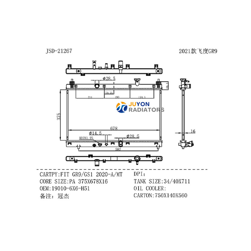 HONDA FIT GR9/GS1 2020-A/MT OEM19010-6X6-H51 Radiator