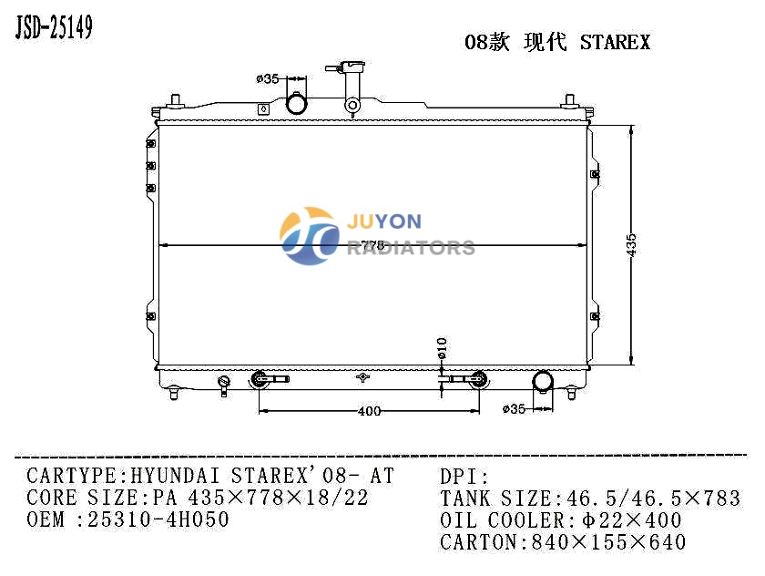 HYUNDAI STAREX'08- AT OEM 25310-4h050 Radiator