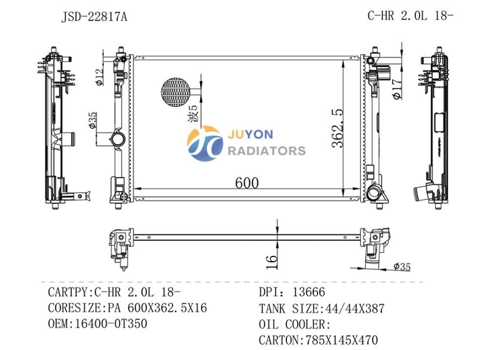 Juyon Radiators factory produces various car radiators aluminum-plastic in high performance quality, with 20 years experience. OEM high Quality & Competitive Price. Contact us for Inquiry!