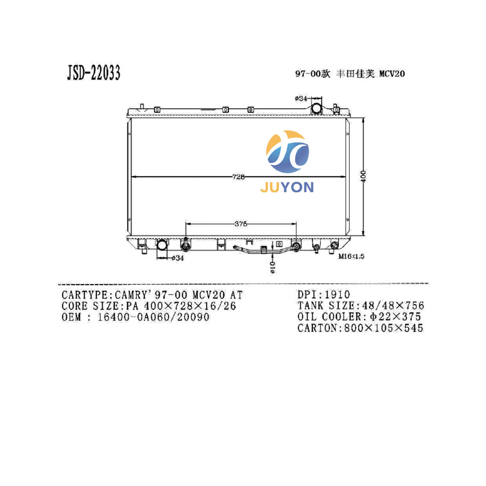 Juyon Radiators factory produces various car radiators aluminum-plastic in high performance quality, with 20 years experience. OEM high Quality & Competitive Price. Contact us for Inquiry!
