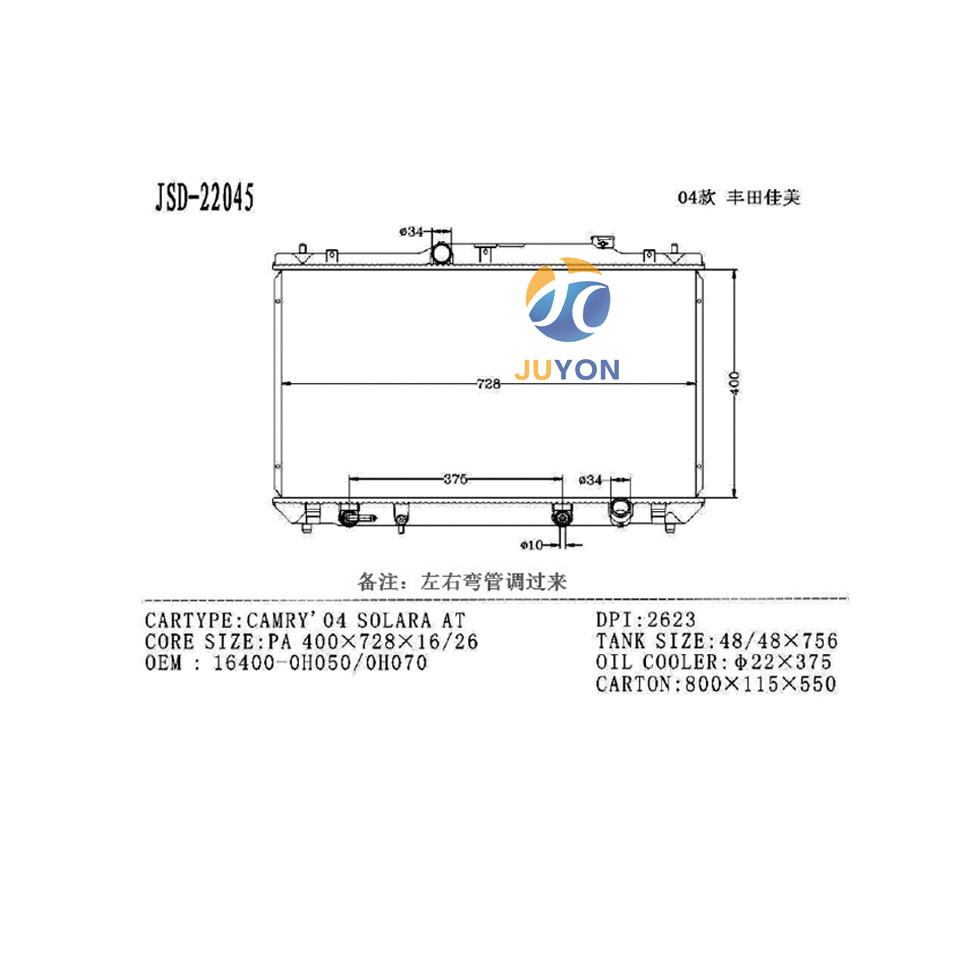 TOYOTA CAMRY' O4 SOLARA AT OEM 16400-0h050/0h070 Dpi 2623 Radiator