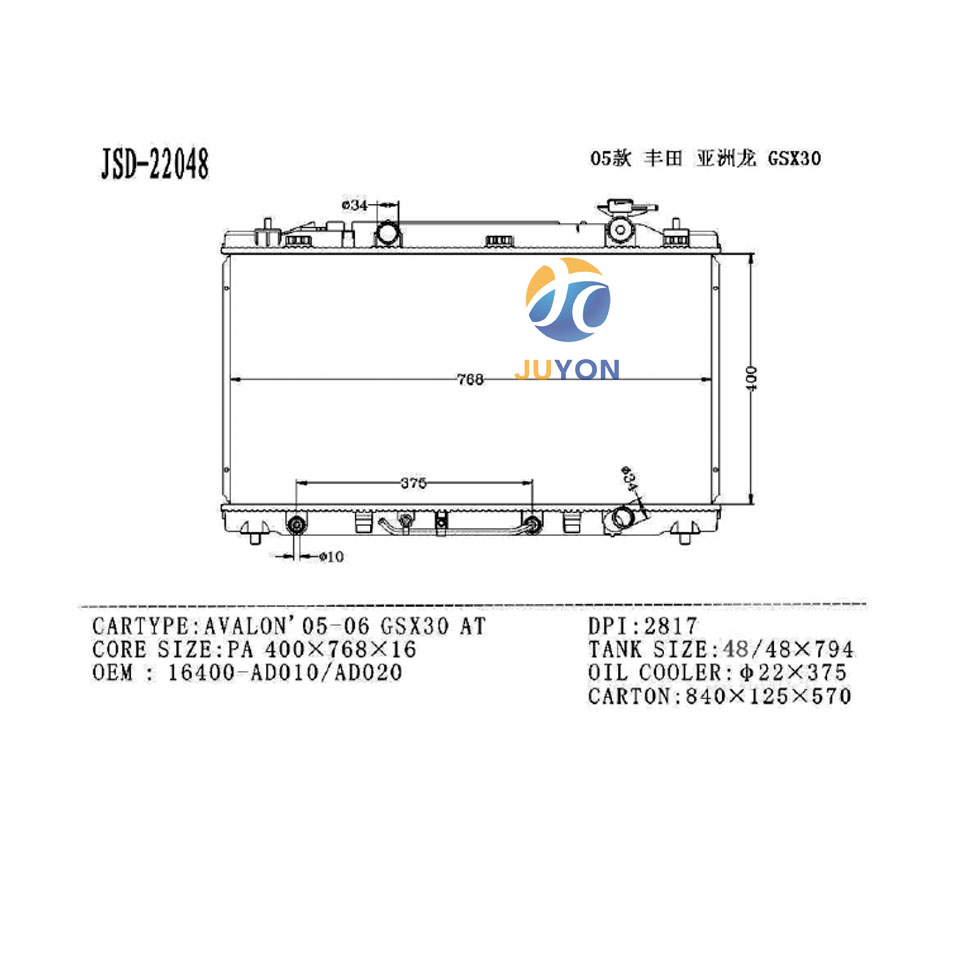 TOYOTA AVALON'05-06 GSX30 AT OEM 16400-AD010/AD020 Dpi 2817 Radiator