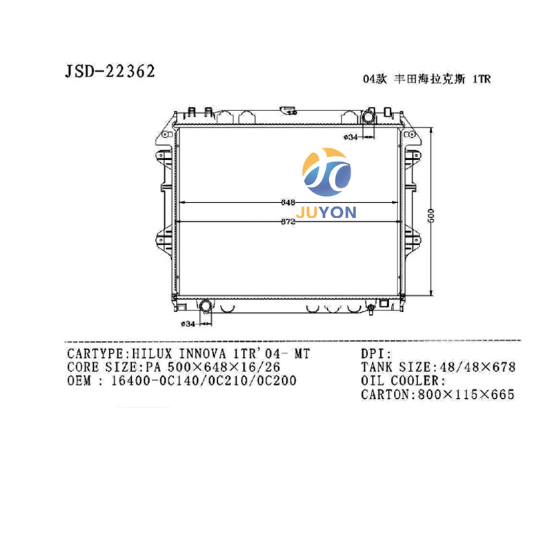 TOYOTA HILUX INNOVA 1TR' O4-MT OEM 16400-OC140/OC210/OC200 Radiator