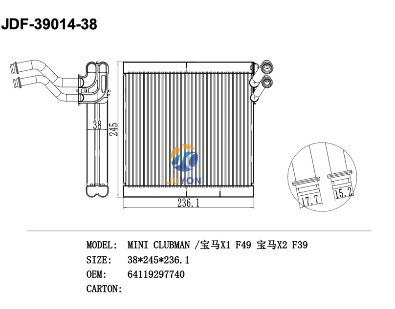 BMW MINI CLUBMAN/BMW X1 F49/BMW X2 F39 OEM 64119297740 Evaporators