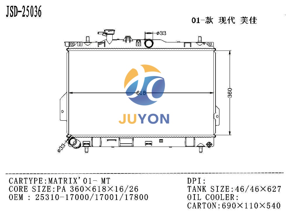 MATRIX'01- MT/25310-17000/17001/17800/radiator