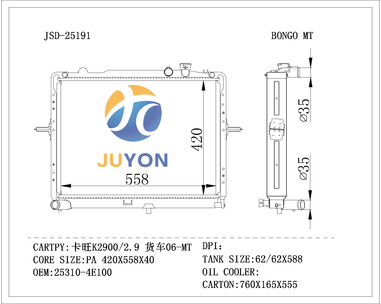 KAON k29000/2.9 GOODS TRAIN 06-MT/25310-4E100/RADIATOR