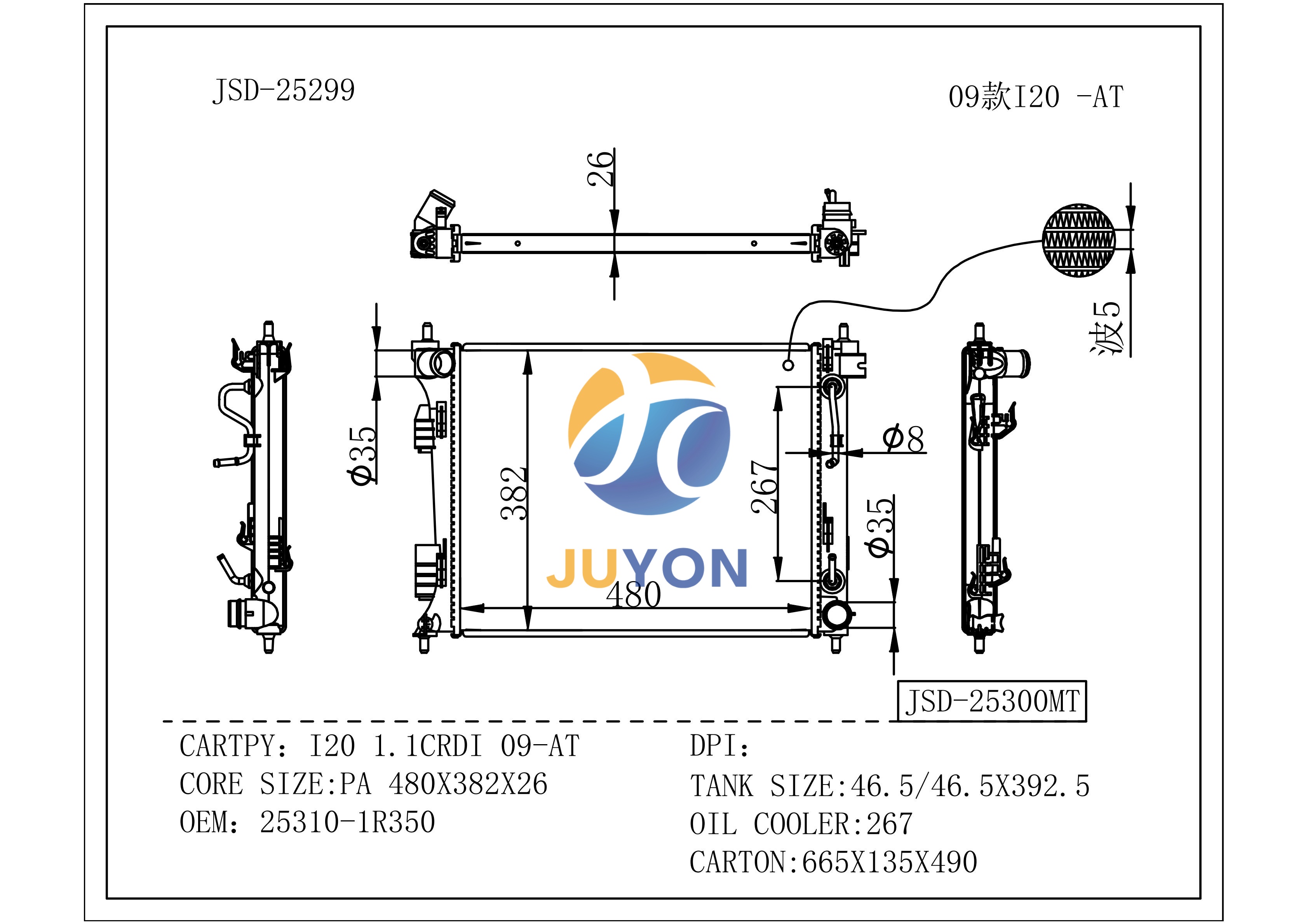 I20 1.1 CRDI 09- AT/25310-1R350/RADIATOR