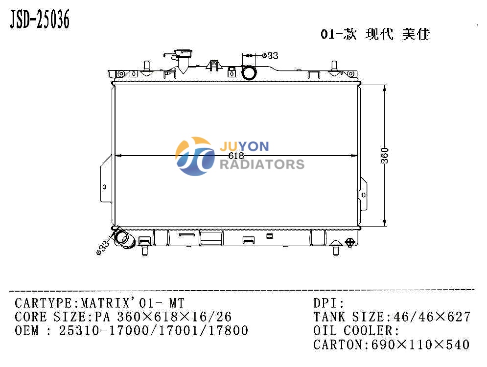 Hyundai MATRIX'01-MT OEM 25310-17000/17001/17800 Radiator