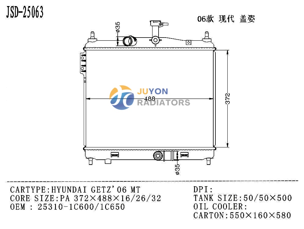 HYUNDAI GETZ'06 MT OEM 25310-1C600/1C650 Radiator