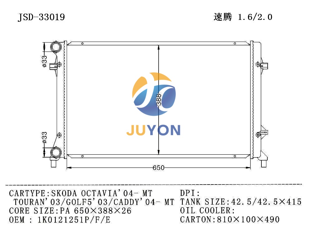 VOLKSWAGEN SKODA OCTAVIA'04'MT/TOURAN'03/GOLF5'03/CADDY'04' MT/1K0121251P/F/E/RADIATOR